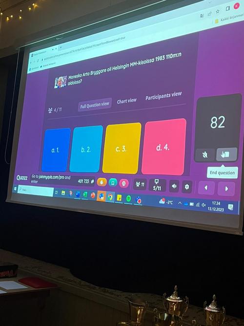 Tiukan tietovisan vaikeimmaksi kysymykseksi osoittautui Arto Bryggaren saavuttaman mitalin väri Helsingin MM-kisoissa. Joulupukin asuinpaikan puolestaan tiesivät kaikki joukkueet.
