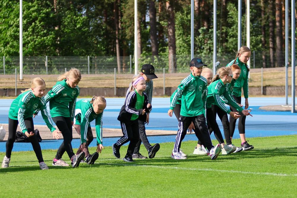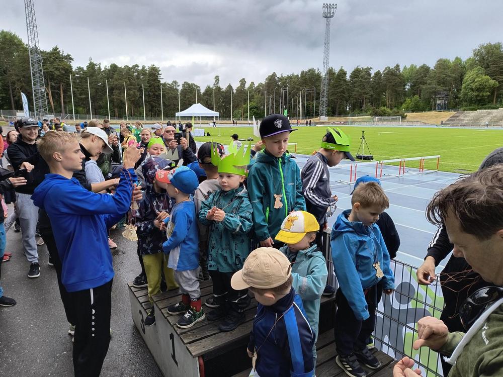 Maanantai-iltana kisattiin ensin Metsä Groupin sponsoroima pienten lasten kilpailu, jossa oli sarjat alle kouluikäisille lapsille. Lajeina oli 40m, pallo ja pituus. Kaikille osallistujille jaettiin upeat puiset hirvimitalit palkinnoksi. Kilpailun tulokset löydät täältä: https://live.tuloslista.com/15136