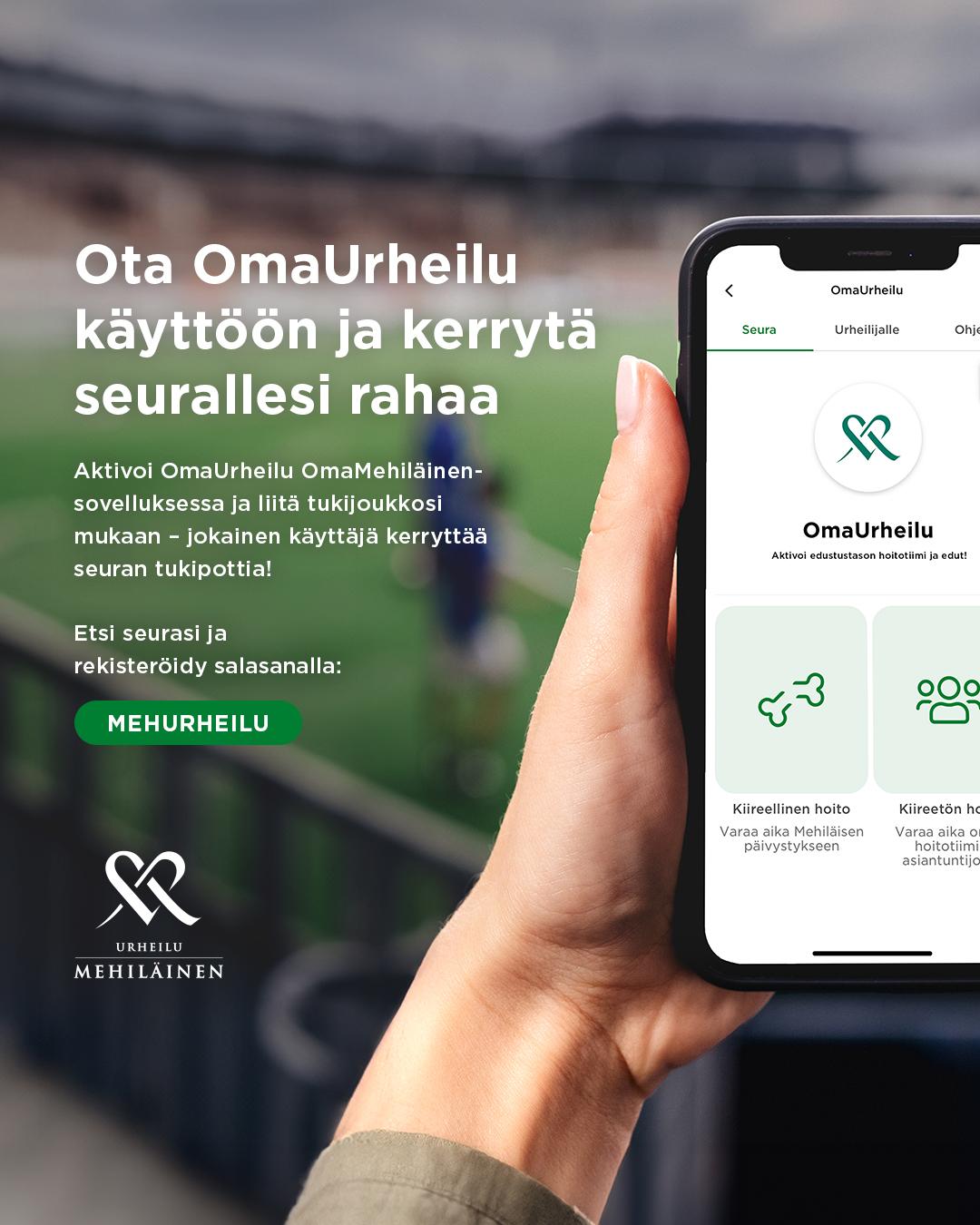 Lataa OmaMehiläinen-sovellus älypuhelimeesi tai kirjaudu verkkopalveluun, niin pääset rekisteröitymään OmaUrheilussa Lappeenrannan Urheilu-Miehet ry:n jäseneksi. Myös perheenjäsenet ja lähipiiri, kuten mummit ja kummit, saavat rekisteröityä kannattajiksi OmaUrheiluun. Näin myös heidän asiointinsa Mehiläisessä kasvattaa seuran tukipottia.